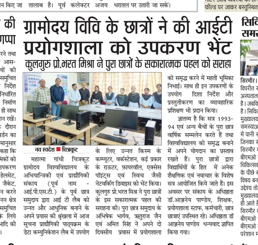 Alumni play a crucial role in the development and growth of universities, providing a wide range of support that can significantly enhance the University’s academic and other support system. Alumni Association of Mahatma Gandhi Chitrakoot Gramodaya Vishwavidyalaya (AAMGCGV), constituted in 2008 and registered in 2014 and re-registered in 2024. This platform has the potential to not only connect with its illustrious alumni from all domains of intellectual enquiry, but also act as the spokesman of the alumni. The aims and objectives of the alumni association are as follows: